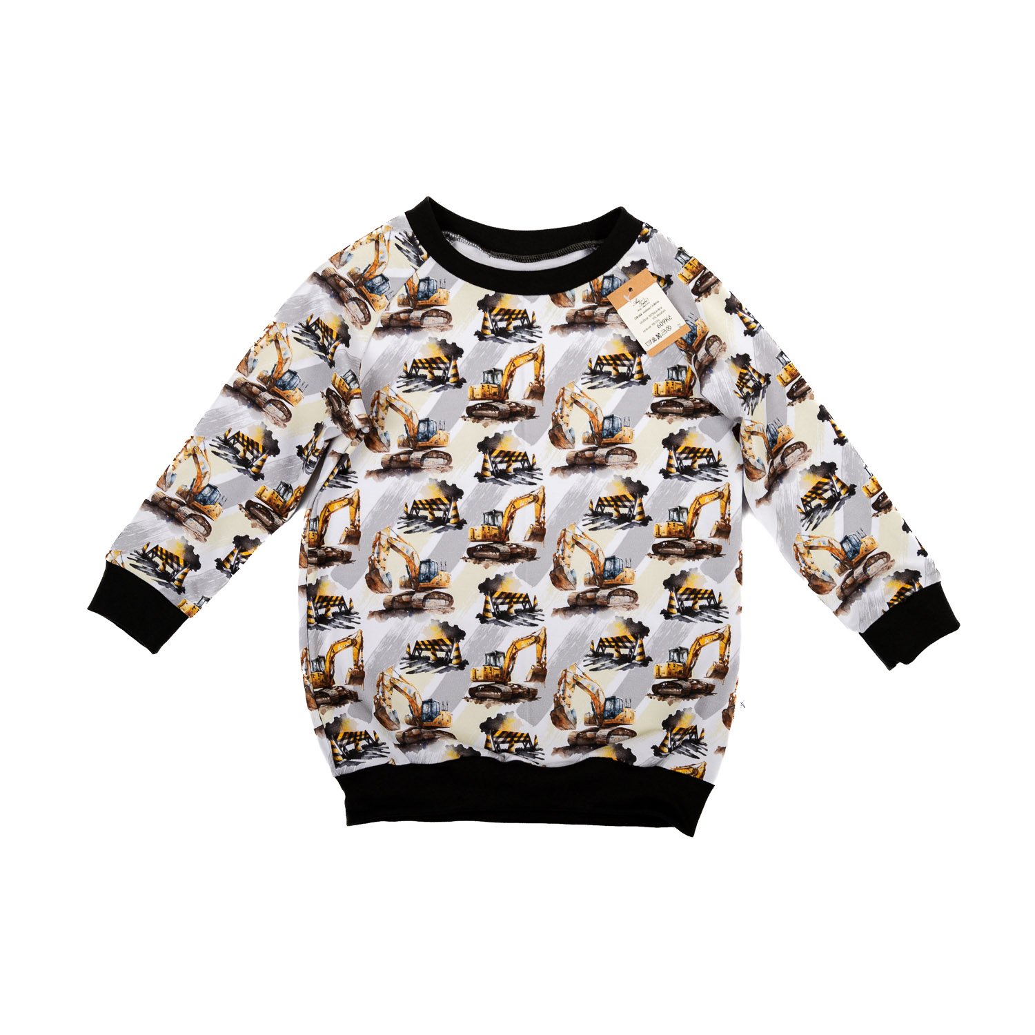 Rostoucí mikina, která je trochu delší a nepotáhne na zadíčka. V průkrčníku je pružný lem, který usnadňuje oblékání a zvládnou to i menší děti. Bez kapuci, tudíž skvělá pod bundu, nikde nic nepřekáží. Mikina je pro celoročně nošení (bez počesu z rubové strany). Přední díl je stejný jako zadní. Pružné náplety v rukávech a zároveň i zakončení mikiny pro lepší držení.