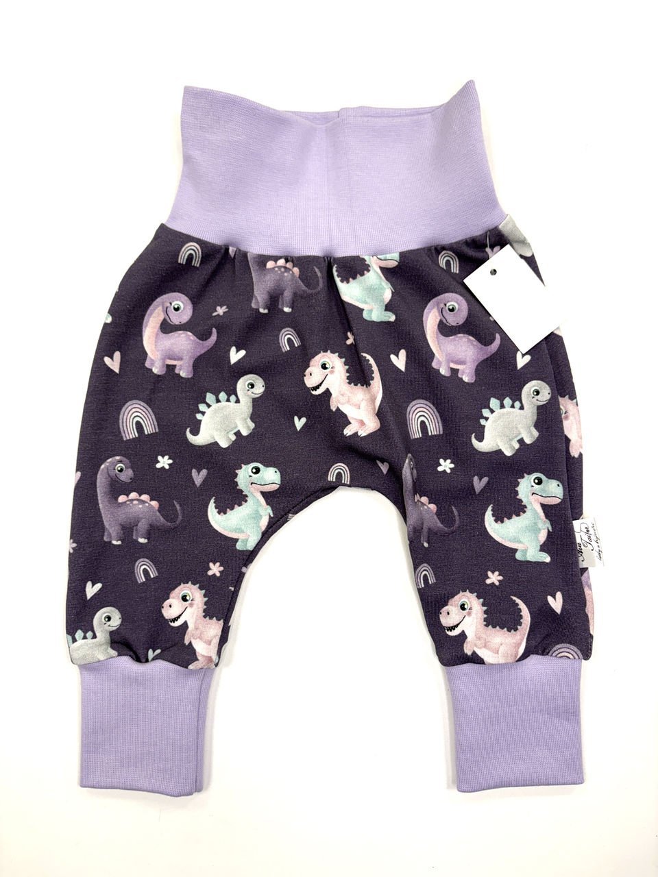 Dětské tepláčky na pleny -dinosauři na fialové/úplet