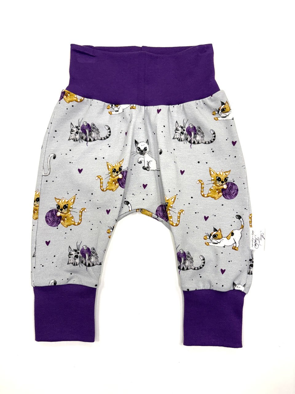 Dětské tepláčky na pleny – kočky s klubkem/úplet