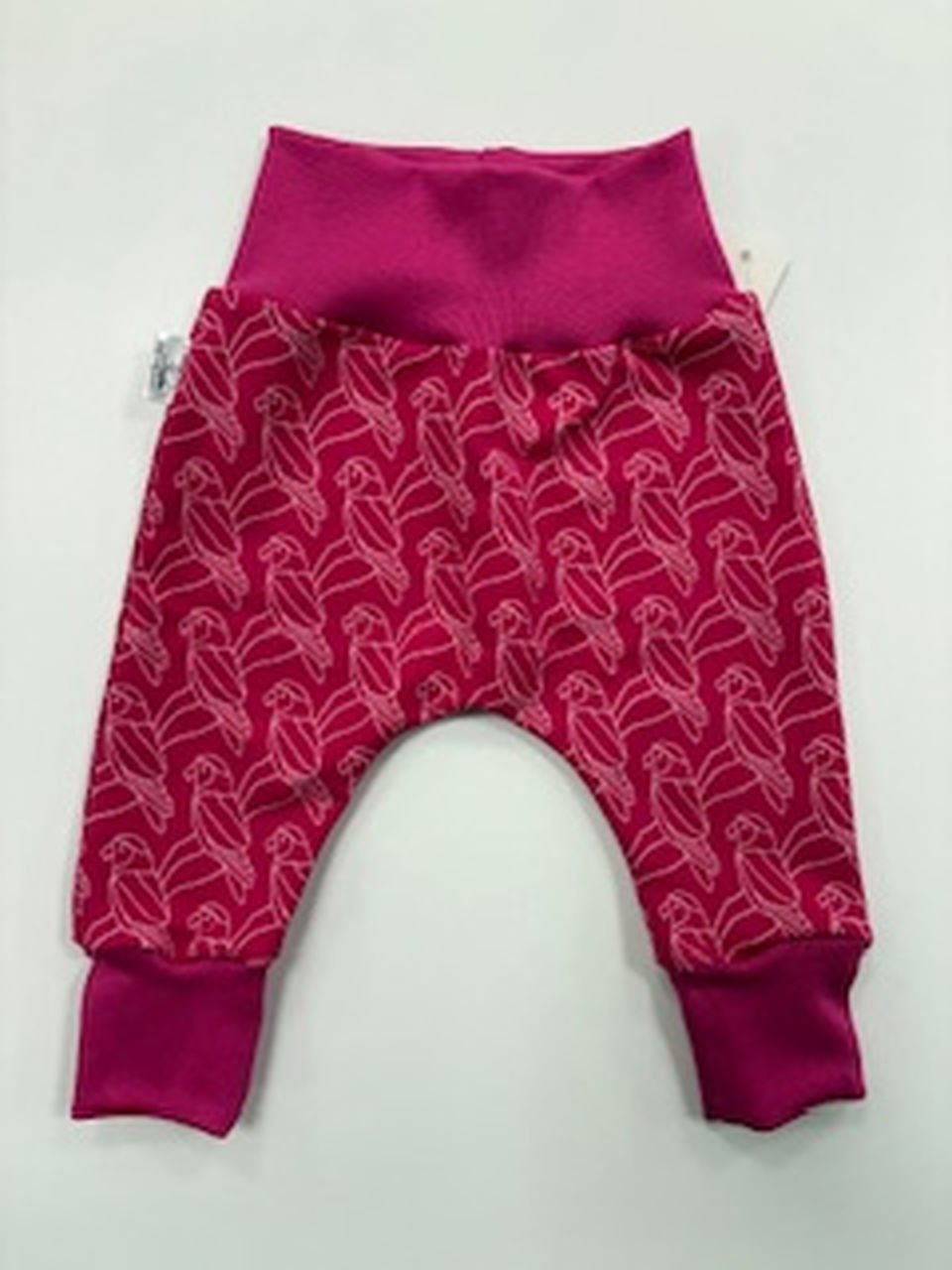 Dětské tepláčky na pleny -papoušci na růžové/teplákovina