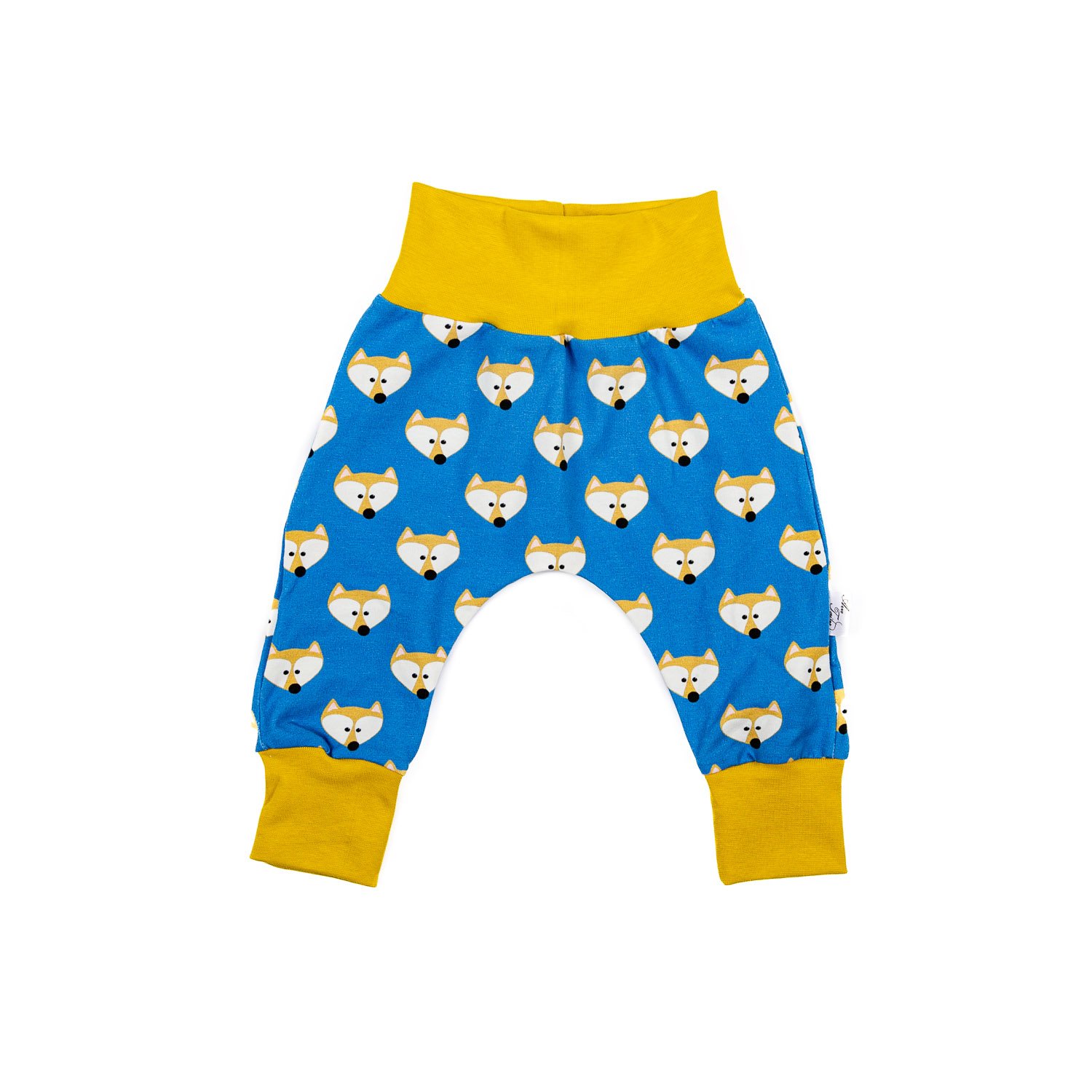 Dětské tepláčky na pleny – lišky na modré/úplet