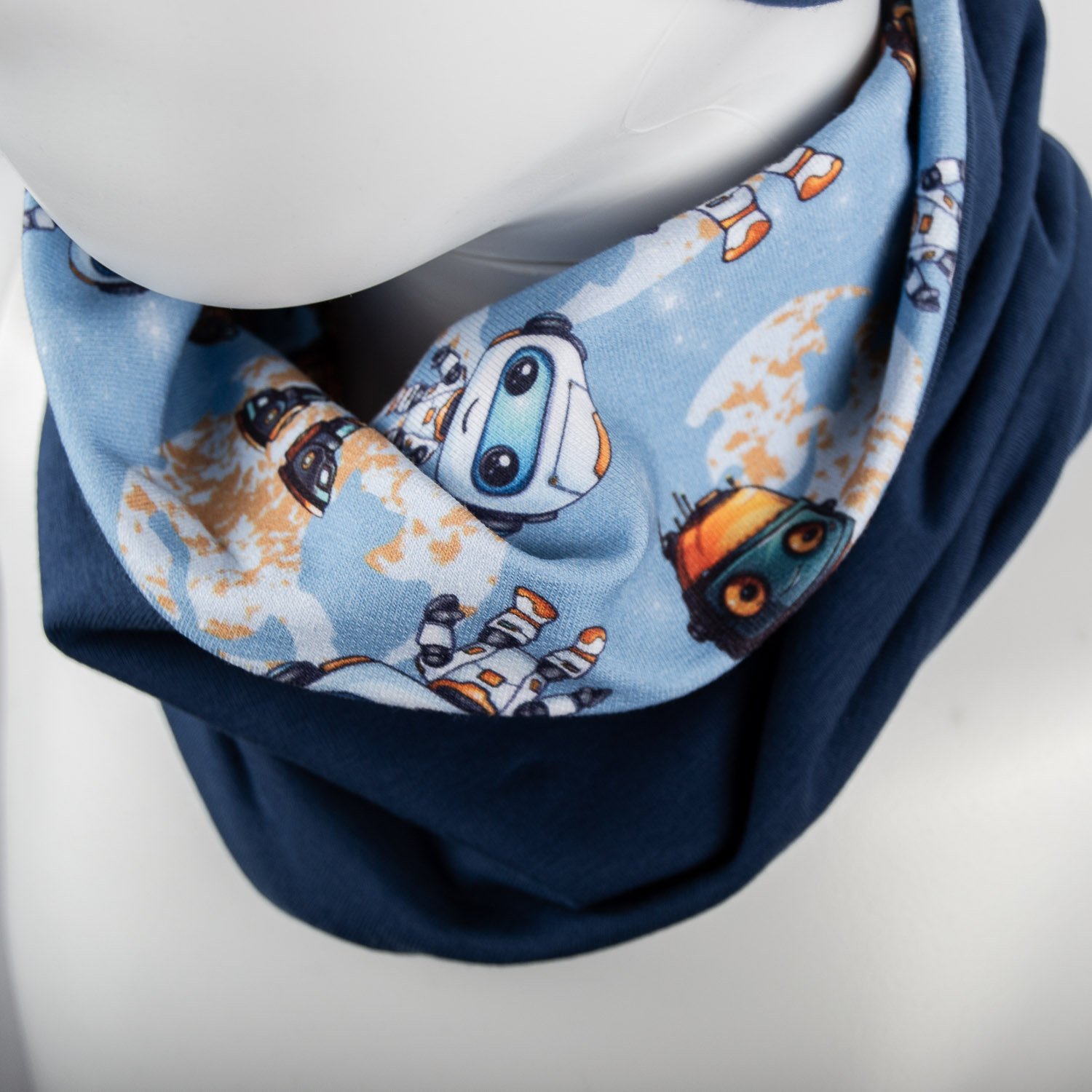 Oboustranný nákrčník se dobře navléká a zároveň neodstává od krku. Vysoký je 20 cm. Jednobarevná verze čepičky i nákrčníku se dobře kombinuje s vícebarevnou bundou.Čepice s nákrčníkem je k prodeji zvlášť nebo jako set. Cena je pouze za nákrčník.