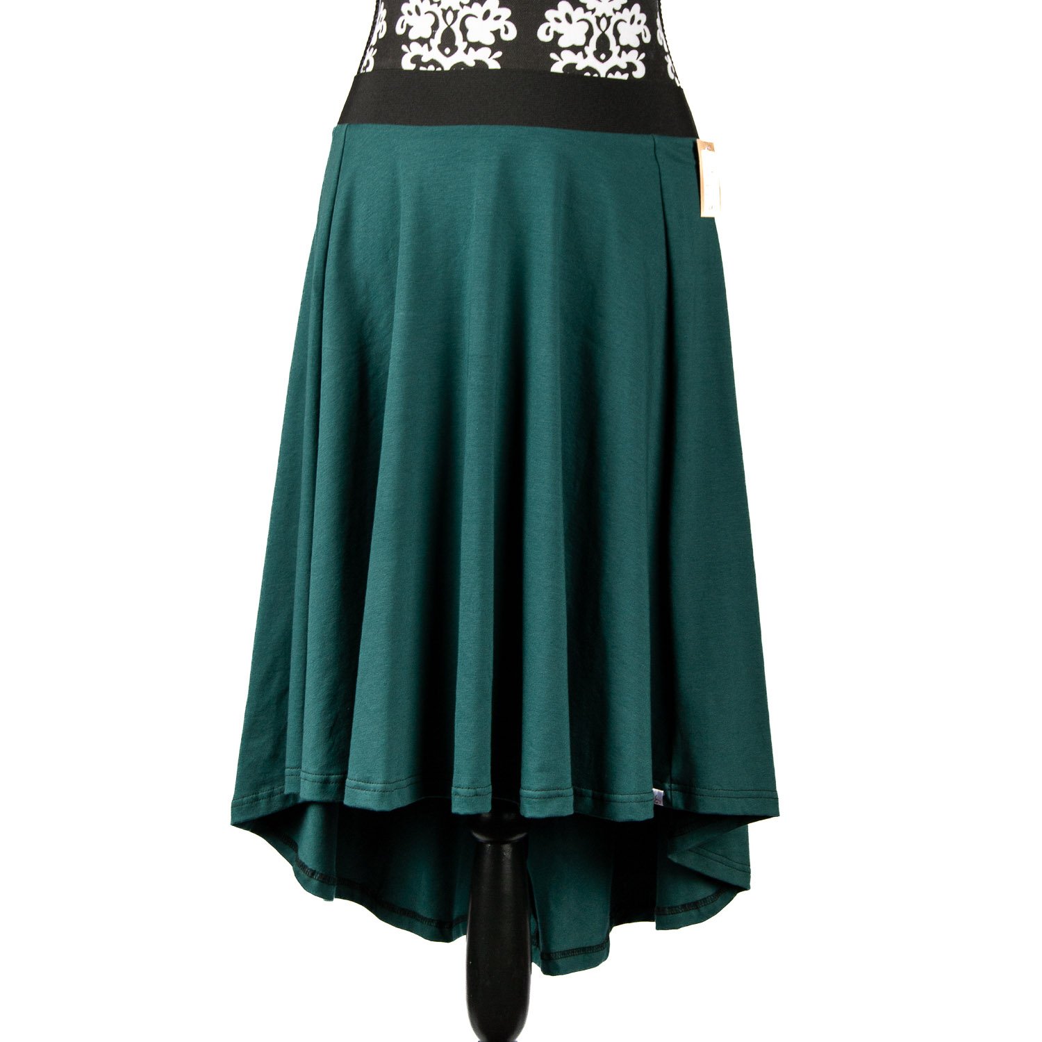 Sukně je vhodná i na běžné nošení, krásná kombinace s koženkovou /jeanovou bundou. V pase je všitá guma, která se trochu přizpůsobí vaší velikosti. Přední díl je kratší než zadní díl.